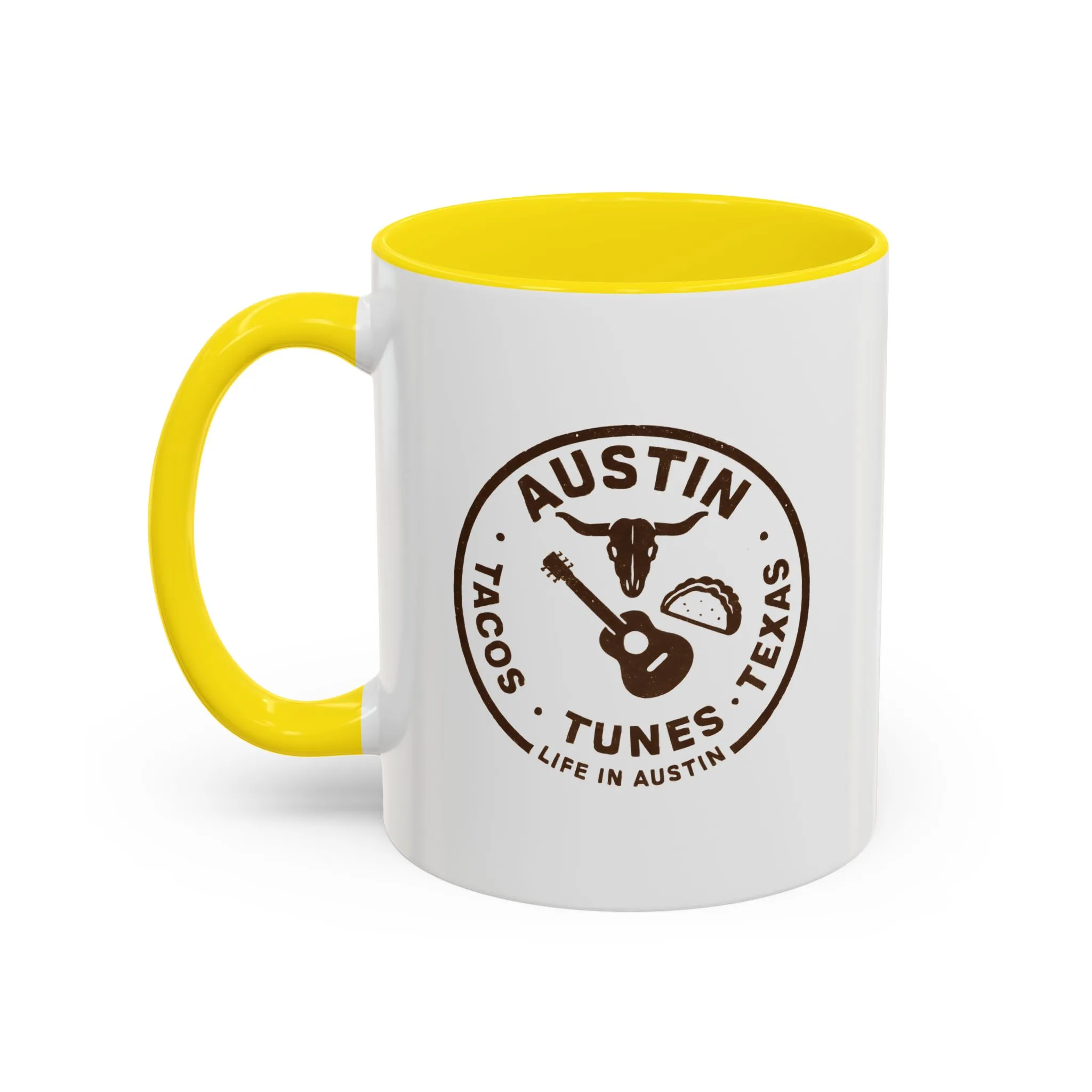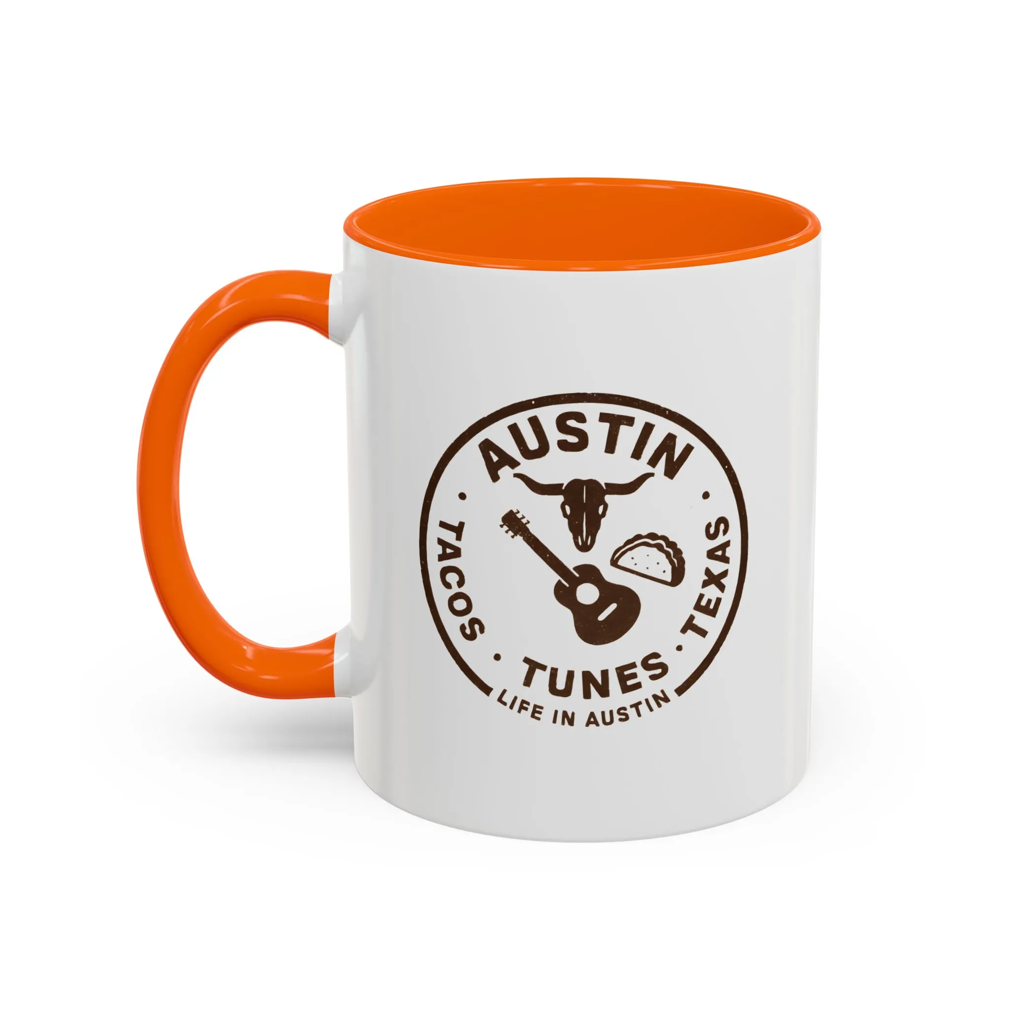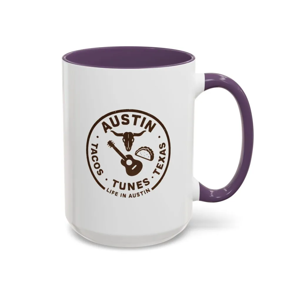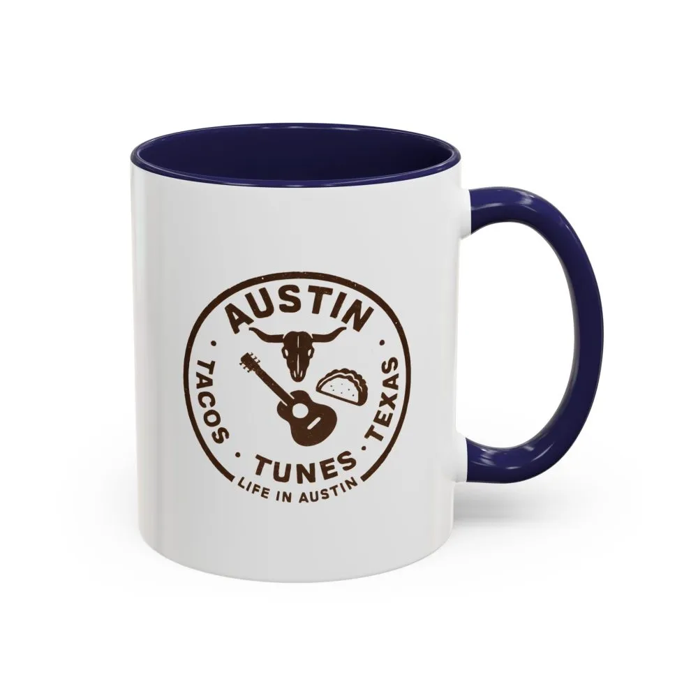 Austin Texas Badge Mug – Rustic Tacos Tunes Life Mug