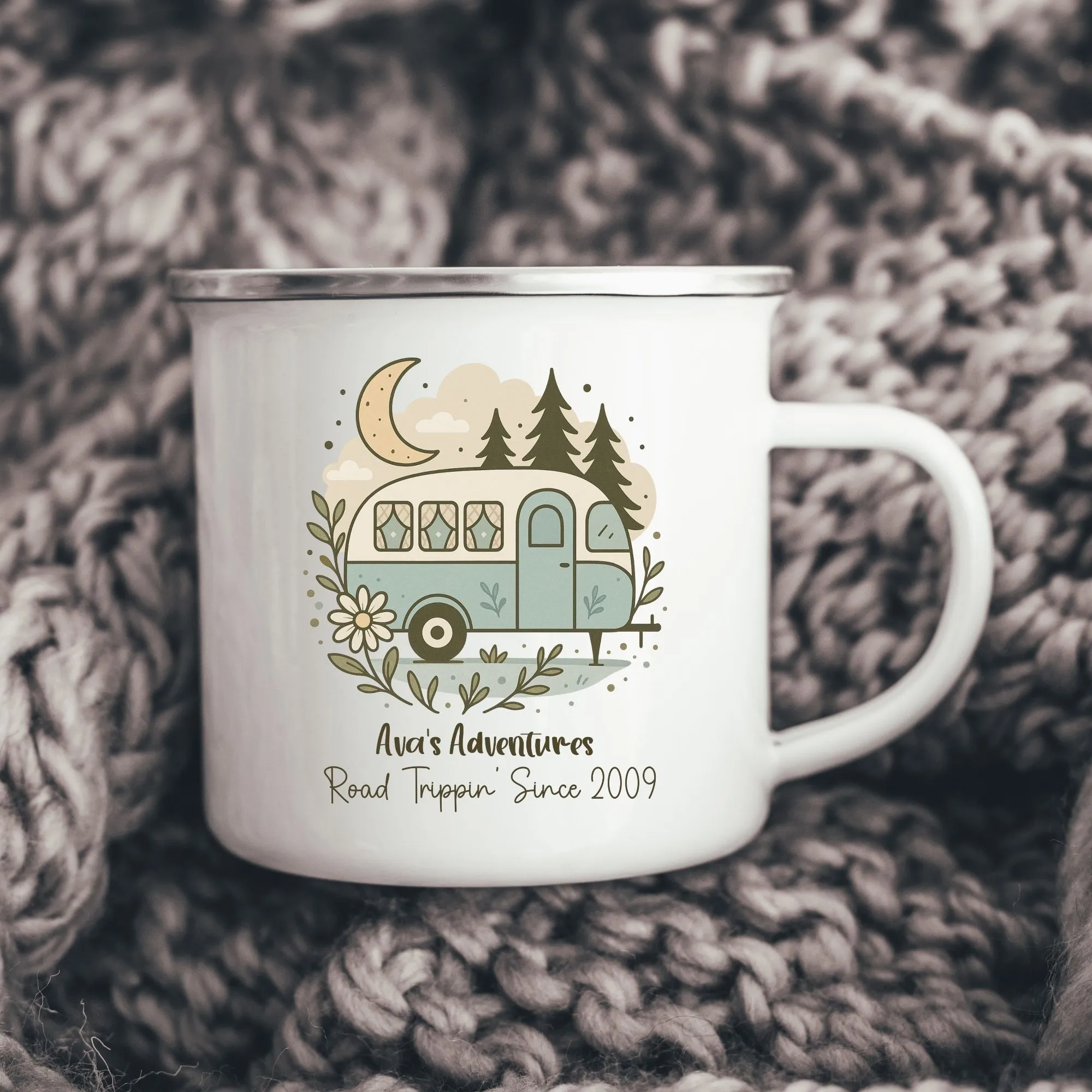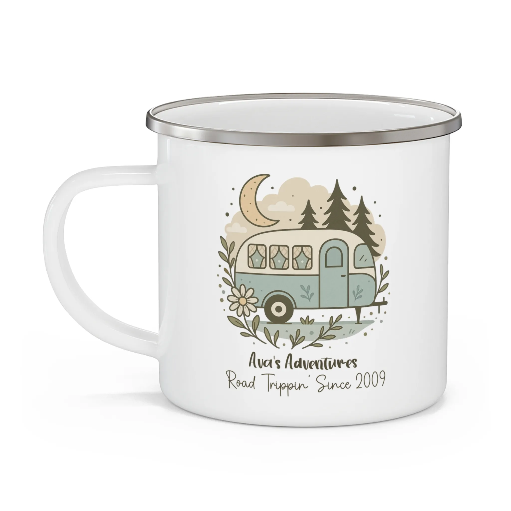 Custom Road Trip Enamel Camping Mug