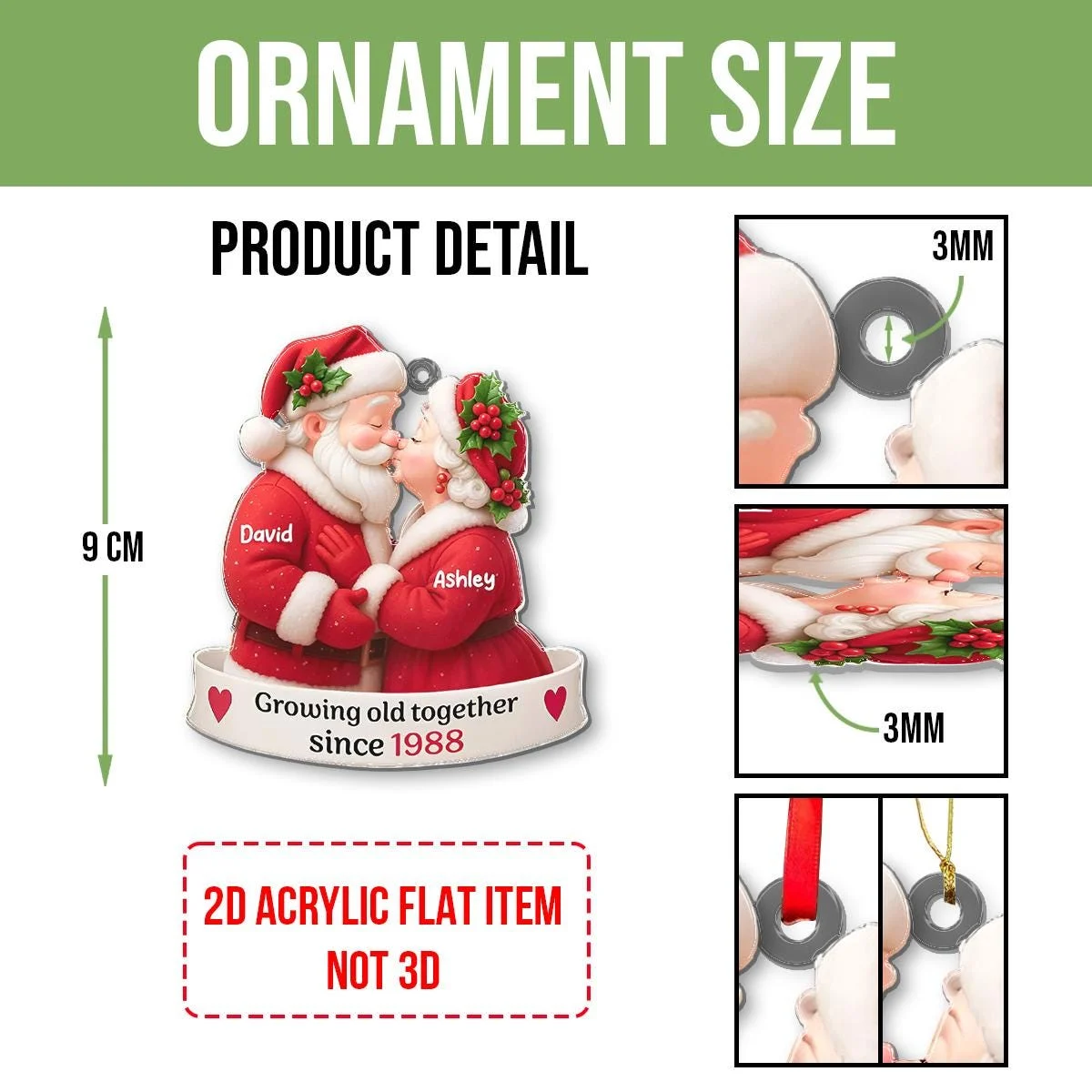 Custom Santa Couple Ornament 2025 – Growing Old Together Acrylic Christmas Decoration – Personalized Holiday Keepsake – Anniversary Gift Idea