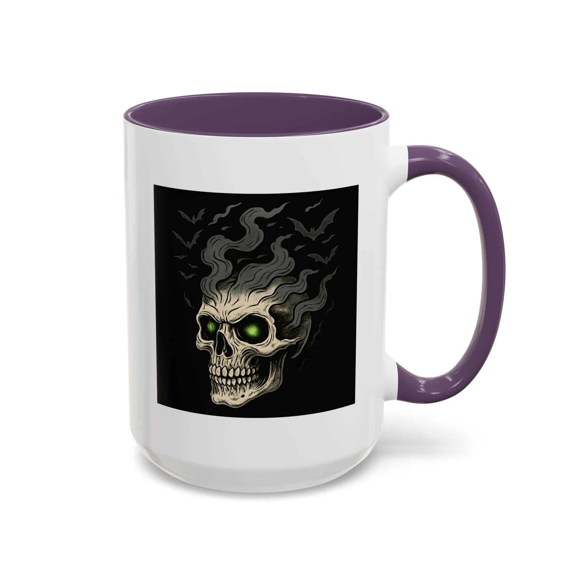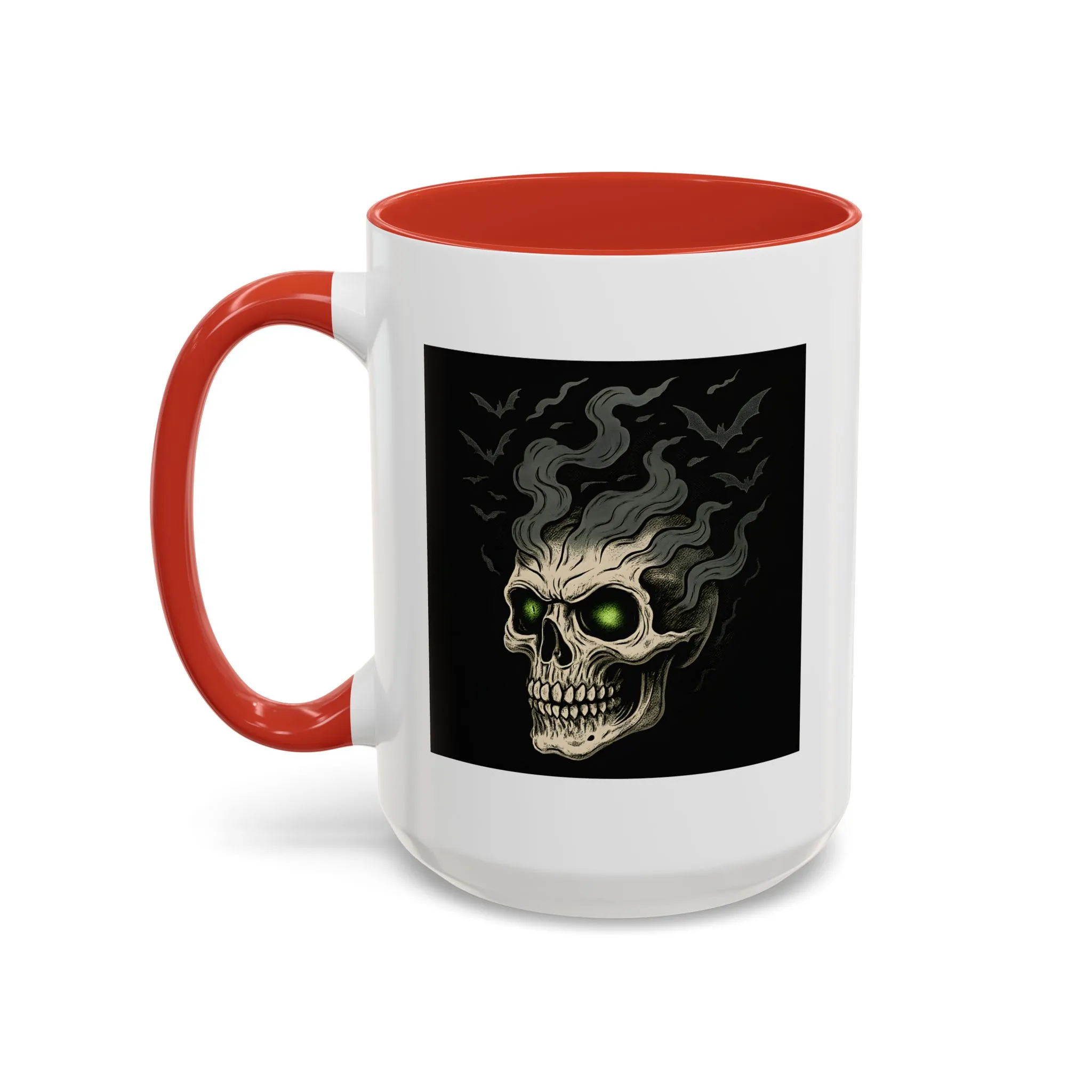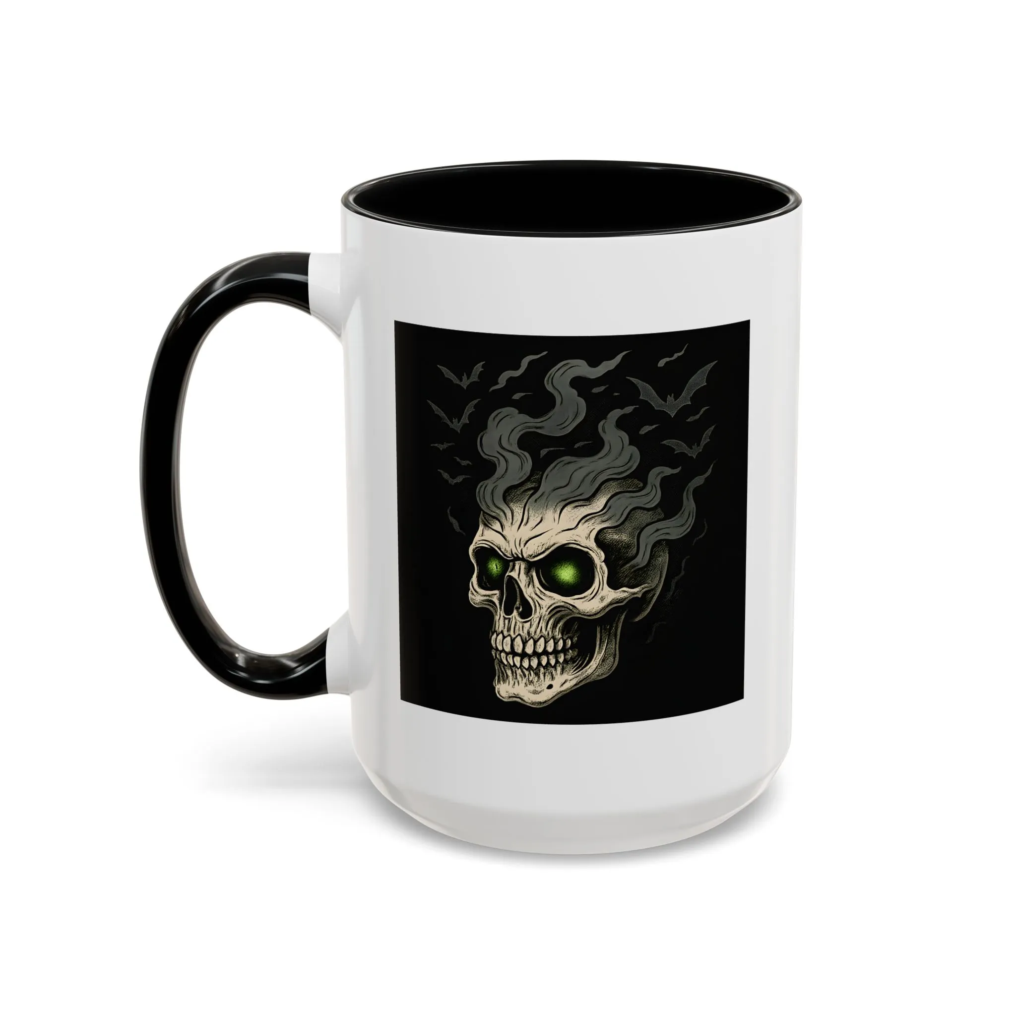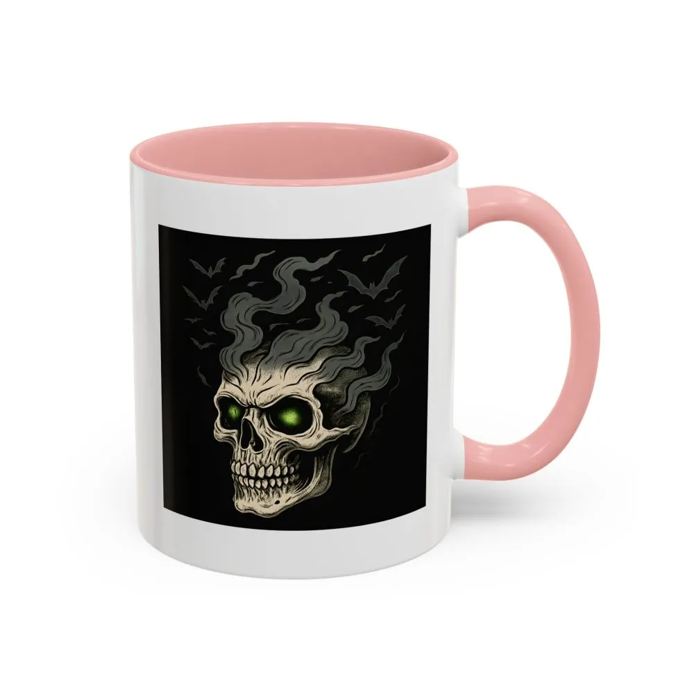 Halloween Skull Mug – Spooky Coffee Cup with Green Eyes & Bats