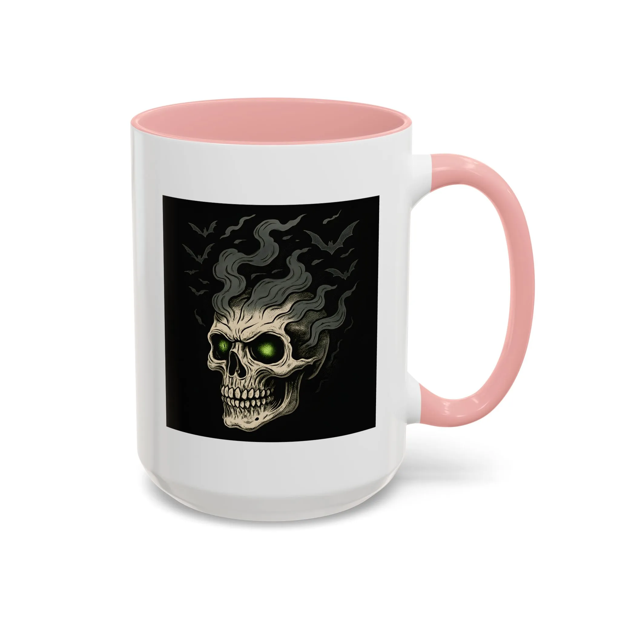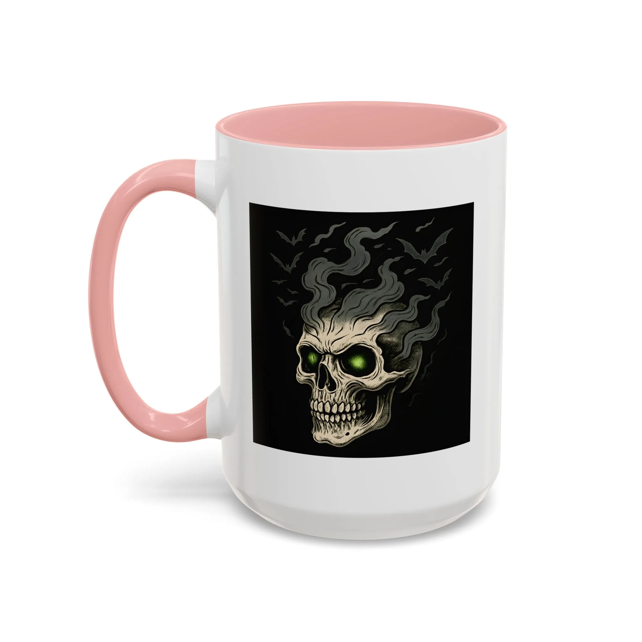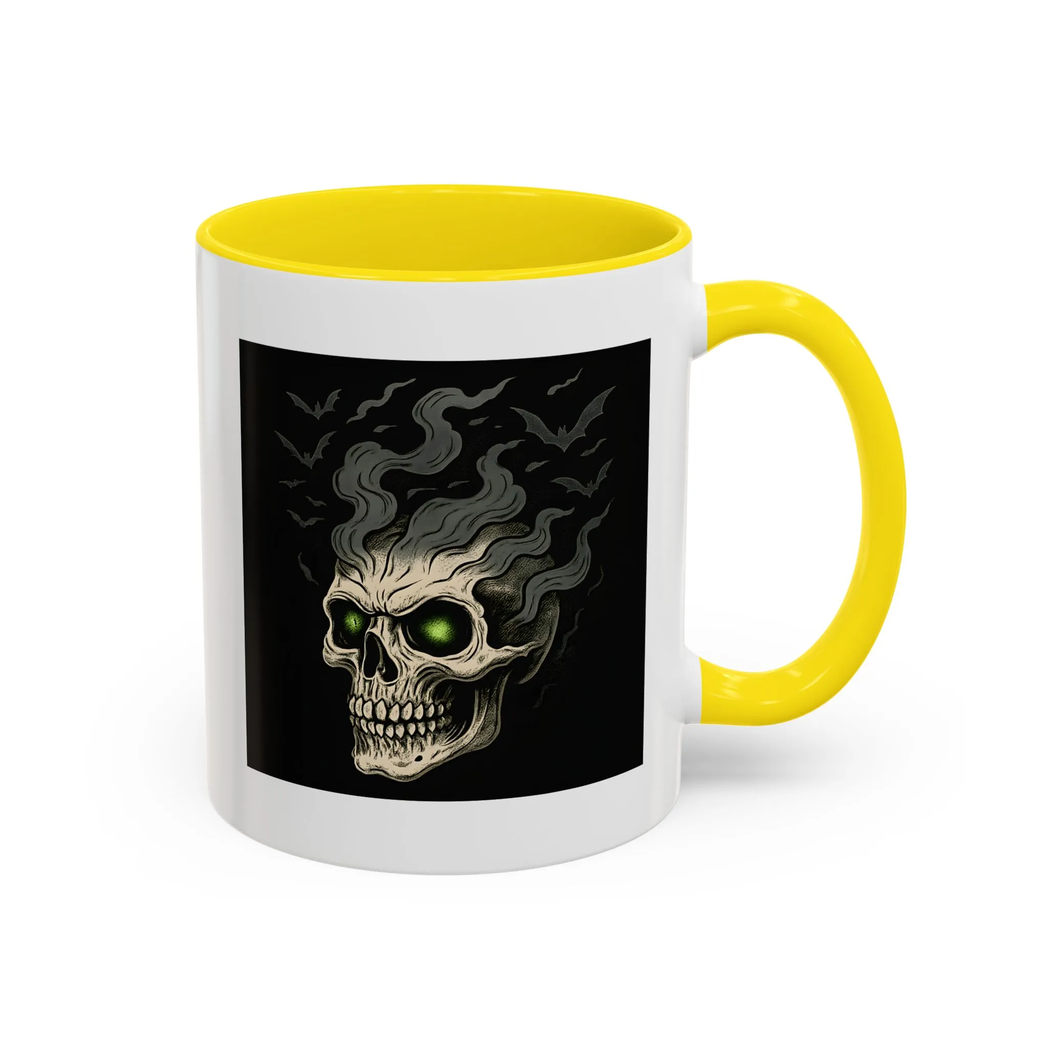 Halloween Skull Mug – Spooky Coffee Cup with Green Eyes & Bats