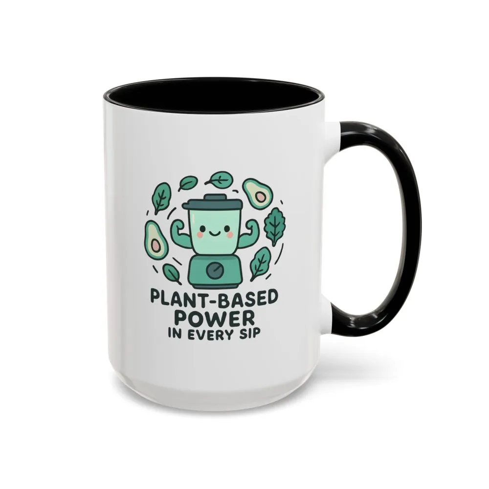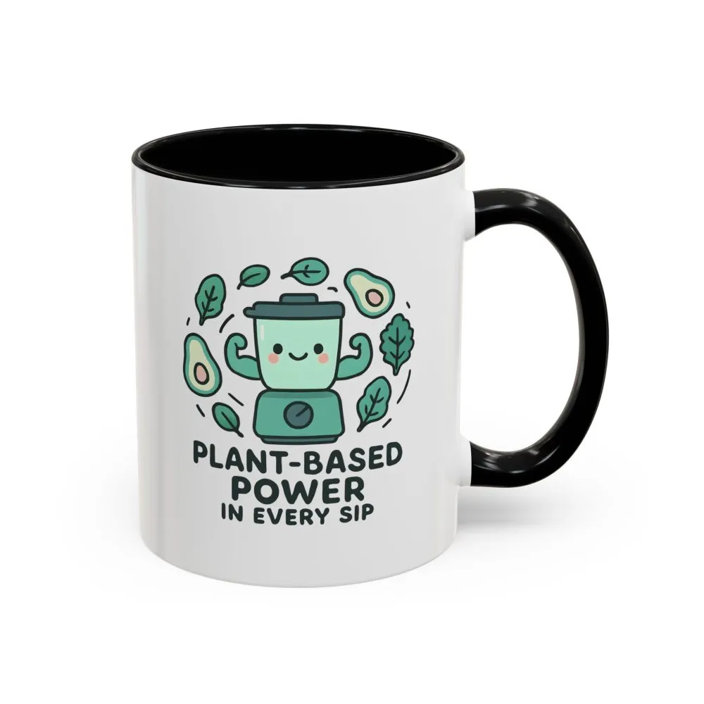 Plant Based Coffee Mugs – Cute Vegan Blender Design with “Plant-Based Power”