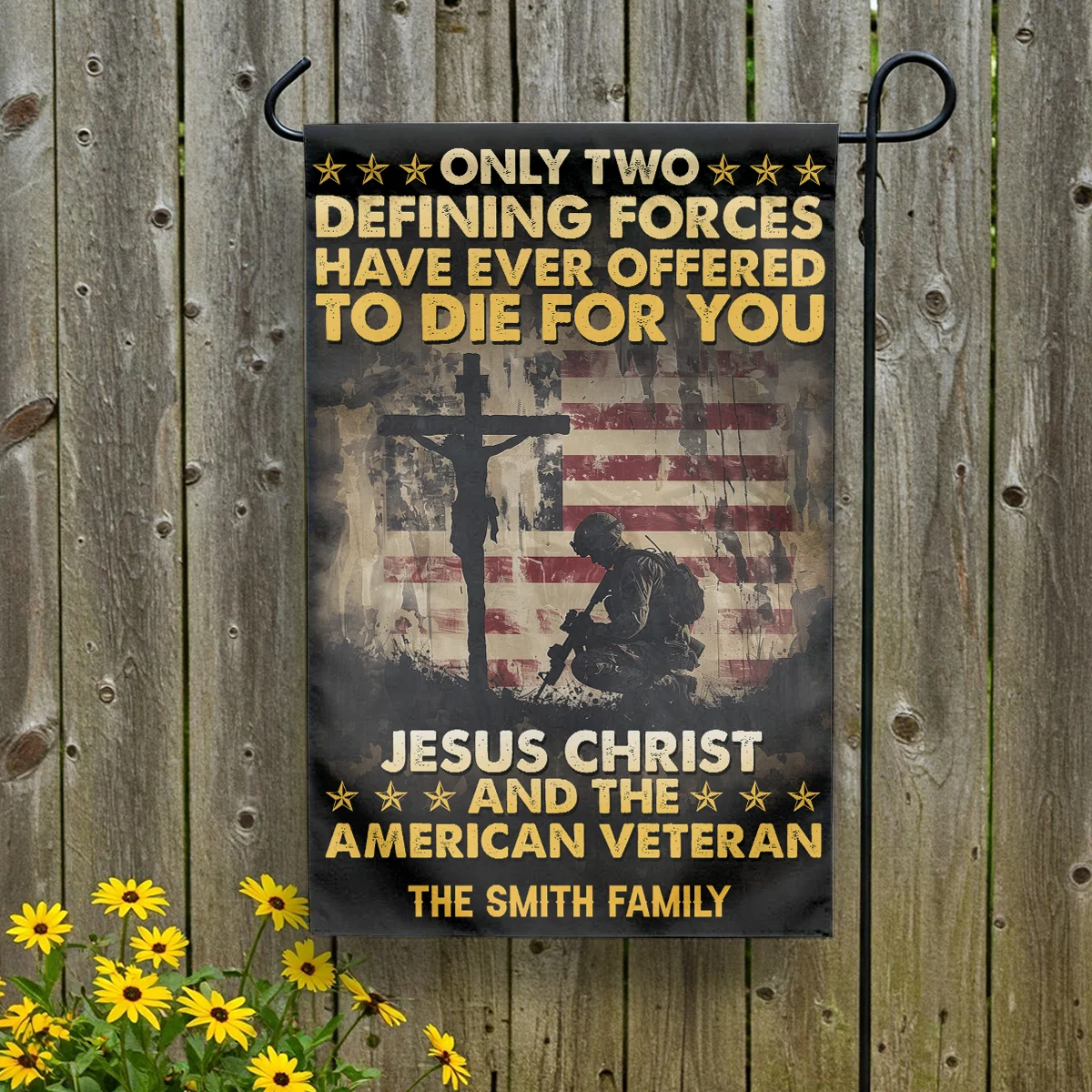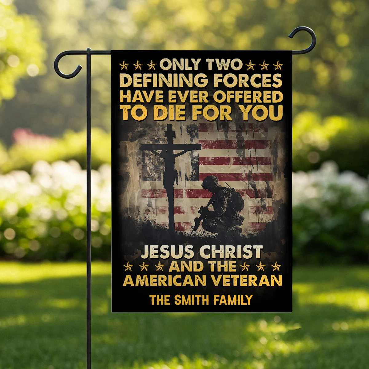 Veterans Day Jesus Flag – Two Defining Forces – Patriotic Garden & House Decoration for Military Heroes