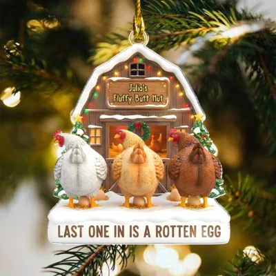 Custom Chicken Butt Ornament – Personalized Funny Christmas Tree Decoration – Barn Holiday Keepsake – Rotten Egg Joke Gift – Farmhouse Xmas Decor 2025