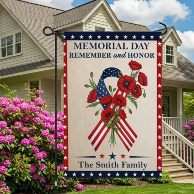 Patriotic Memorial Day Flag – Remember and Honor Veterans – Custom Family Name Garden Flag & House Flag